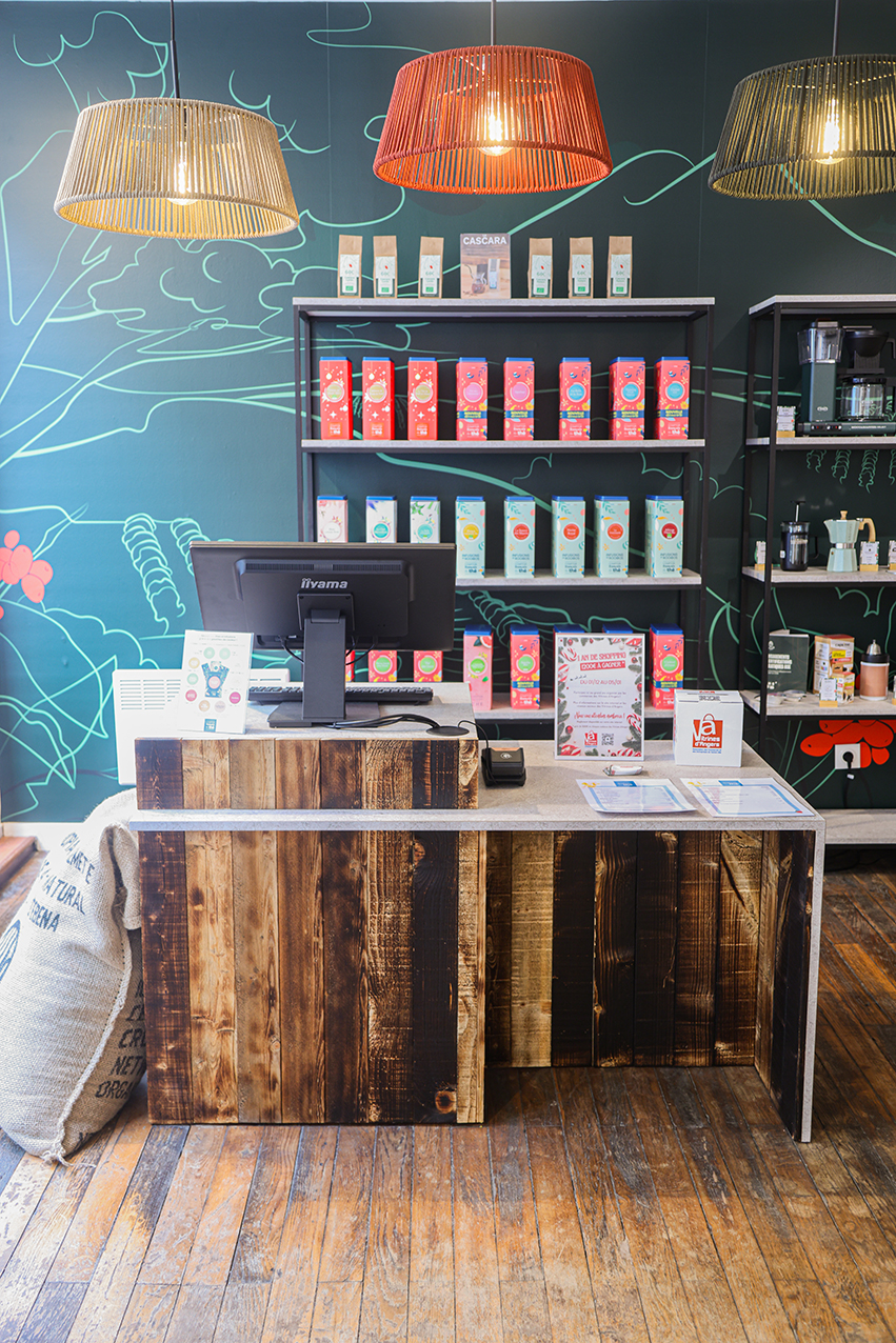 Chaque élément est pensé comme un module : fonctionnel, durable et reproductible. Du comptoir aux tables d’atelier, le design conjugue esthétique, usage et sens, offrant aux futurs lieux Café BOC une trame commune et évolutive.
