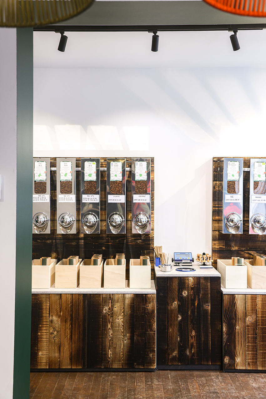 Des Étoiles a conçu l’aménagement de Café BOC comme une narration fluide retraçant la filière du café, de la cueillette à la dégustation. Ce fil rouge scénographique valorise la chaîne humaine derrière chaque tasse : producteurs, coopératives, transporteurs, torréfacteurs et baristas. Une histoire collective, lisible et partageable, pensée pour accompagner le déploiement du concept en franchise.